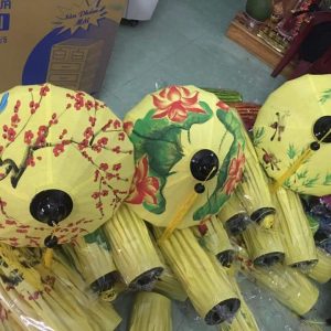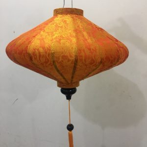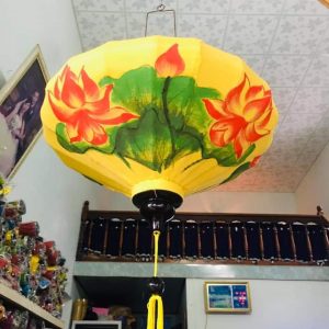Đèn tre truyền thống kiểu đĩa bay vải lụa hoa hồng